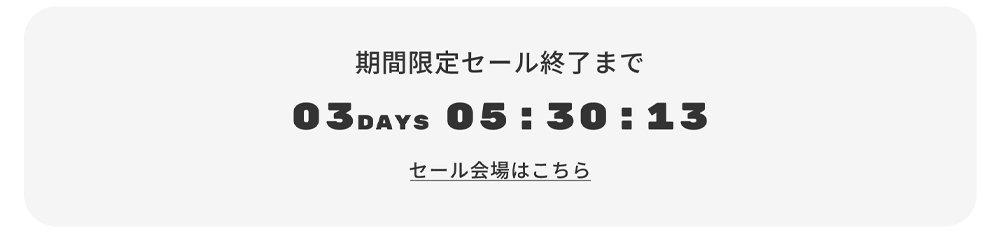 【セール終了まで XX:XX:XX】や【 新商品発売まで XX Days XX:XX:XX】のように、