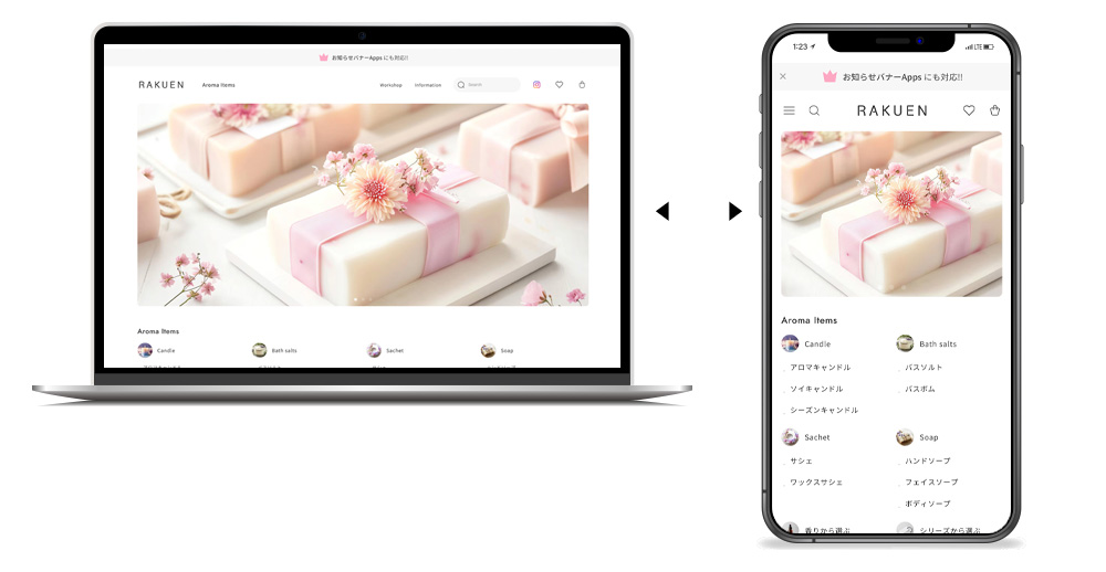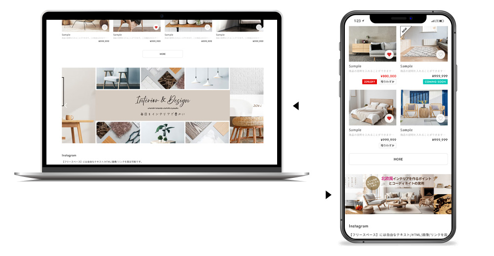 レスポンシブに最適化されたスライダーやレイアウトが商品の魅力を最大限に引き出します。