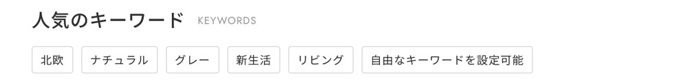「CATEGORY」「SHOP INFO」などのタイトルや検索の「キーワードから探す」という表記を変更できます。