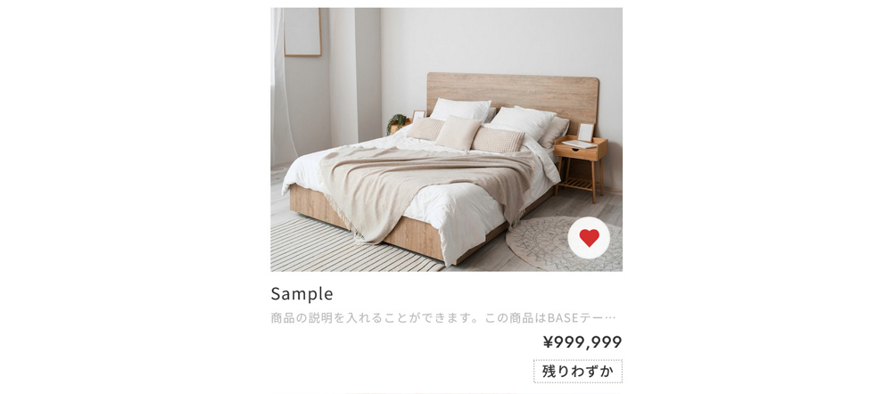 指定した在庫数を下回った場合、トップページと商品ページの商品に在庫僅少のラベルを表示することができます。