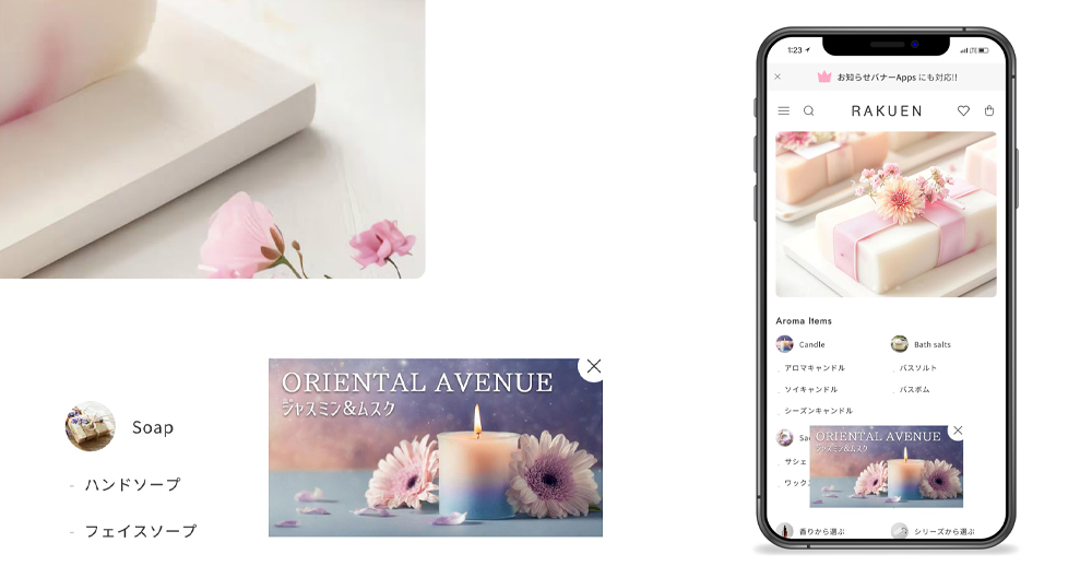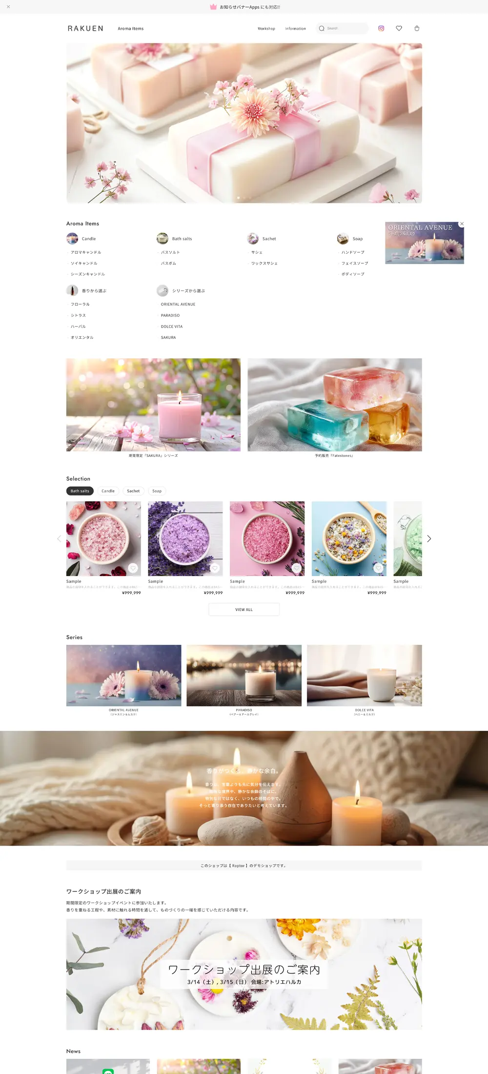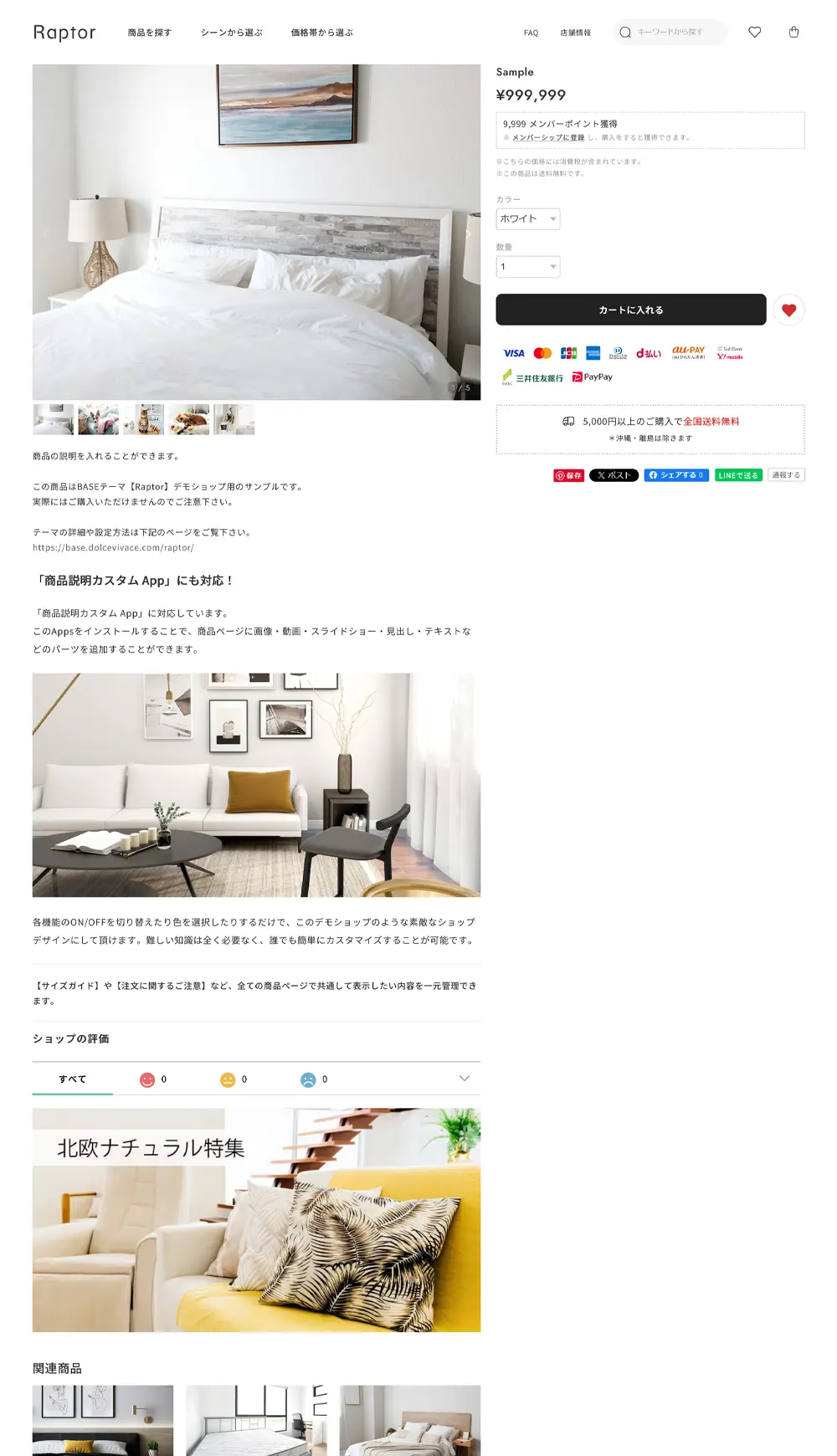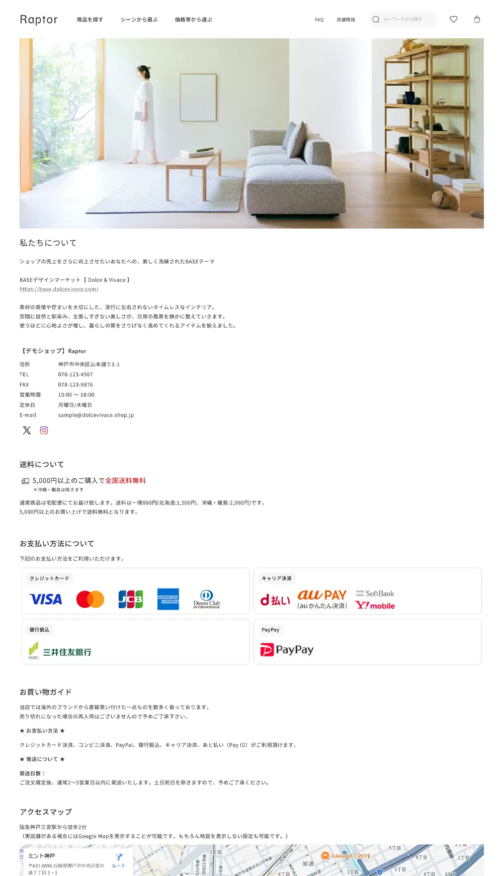 実際にBASEで開設したショップを「Raptorのテーマ機能」と「無料のBASE Apps」のみを利用してカスタマイズしています。