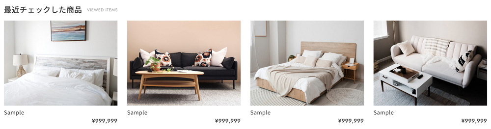 トップページと商品ページに「最近チェックした商品(閲覧履歴)」を表示することができます。