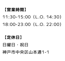 「 <br> 」と入力すると改行され、「 <p> ~ </p> 」で囲むと段落になり、「 <b> ~ </b> 」で囲むと太字になります。<p> <b>【営業時間】</b> <br> 11:30-15:00(L.O. 14:30) <br> 18:00-23:00(L.O. 22:00) </p> <p> <b>【定休日】</b> <br> 日曜日・祝日 <br> 神戸市中央区山本通1-1 </p>以下のように表示されます。