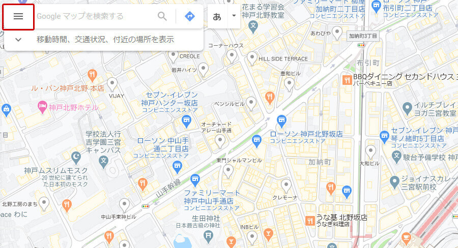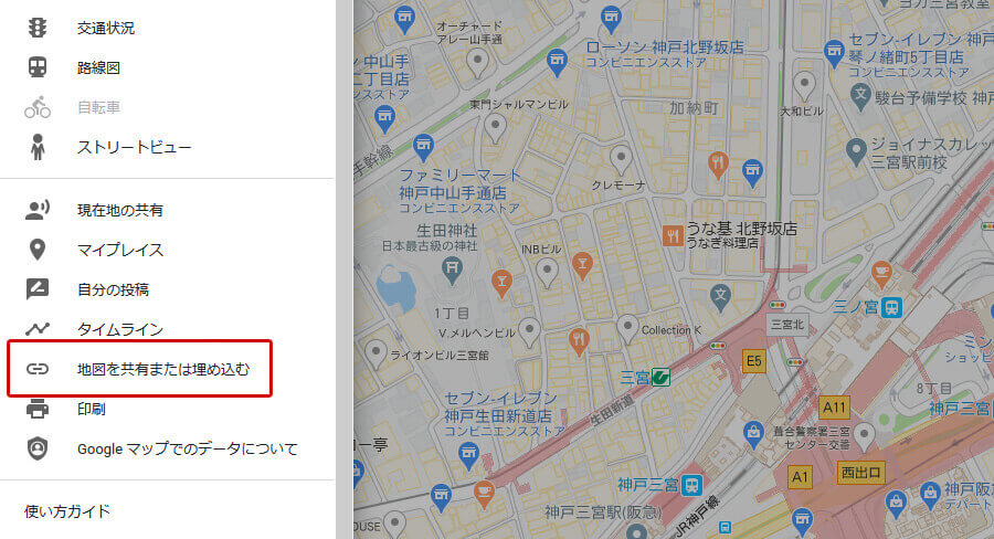 2. 画面の左上にある『≡』をクリックします。3. 「地図を共有または埋め込む」をクリックします。
