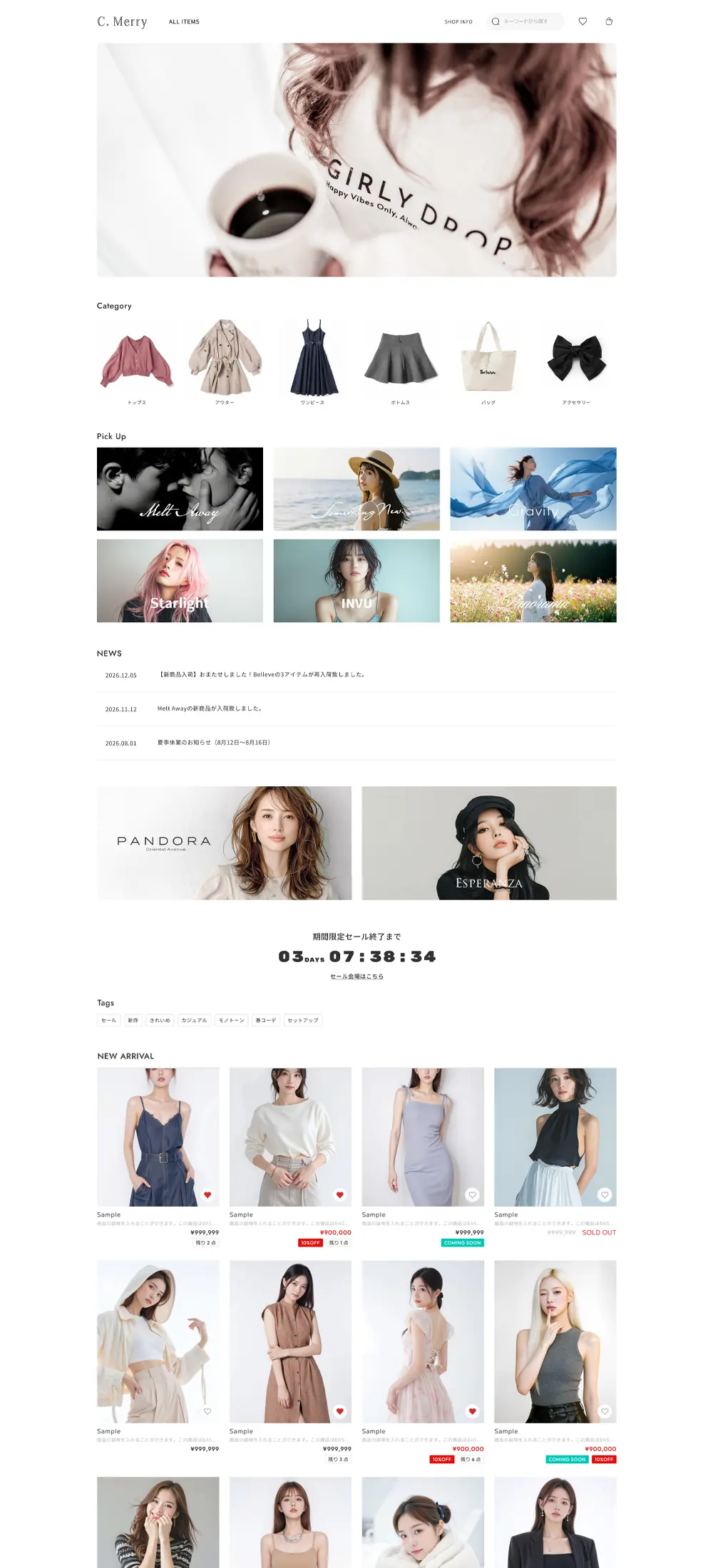 ミニマルな構成のショップでは洗練された余白が商品の魅力を最大限に発揮します。