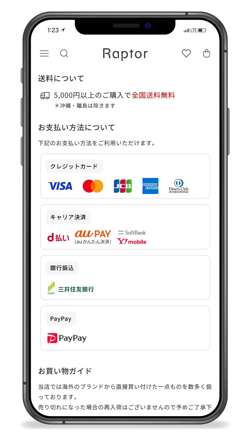 フリースペース、カテゴリー、ショップ情報、お支払い情報、送料など、
