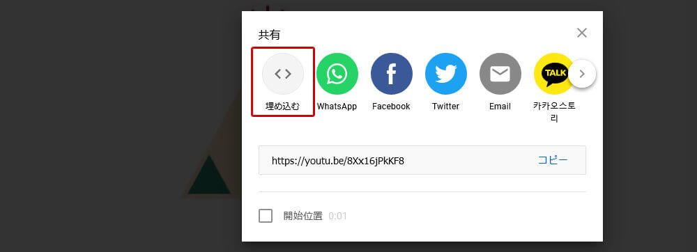 YouTube動画 埋め込みコードの取得方法