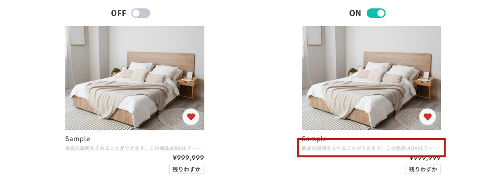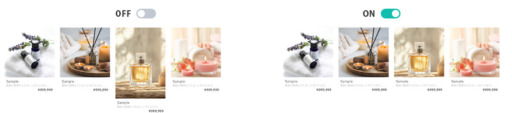 商品一覧をすっきりと見せたい場合にはOFFにしてご利用ください。
