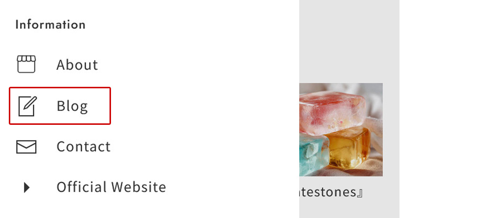 (トップページの「バナー」「ピックアップ」「外部リンク」等からその記事ページへリンクさせるイメージとなります。)テーマ設定の『5-1【 Blog App 】』で、ブログをメニューから非表示にしたり、ブログの日付を非表示にすることで、常設コンテンツのように見せることもできます。