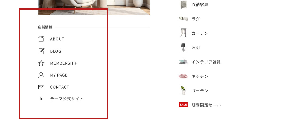 初期値は「 SHOP INFO 」になっています。