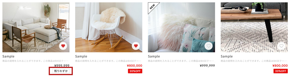在庫表示(残りわずか)