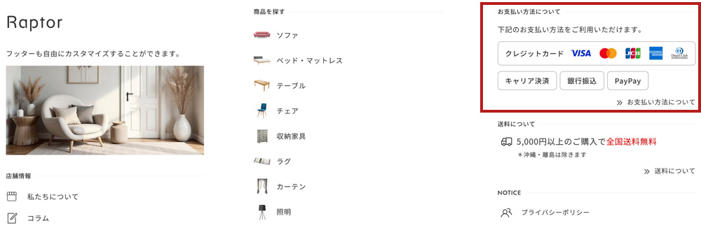 フッターに「お支払い方法」を表示 ON/OFF