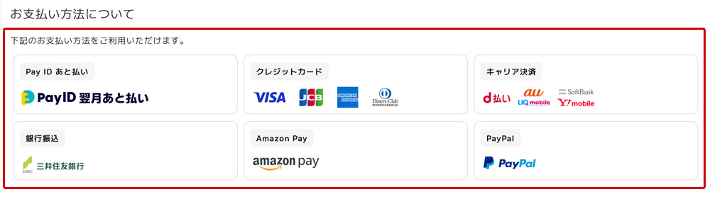 表示内容は『 1-10【 お支払い方法の表示 】 』で設定することができます。