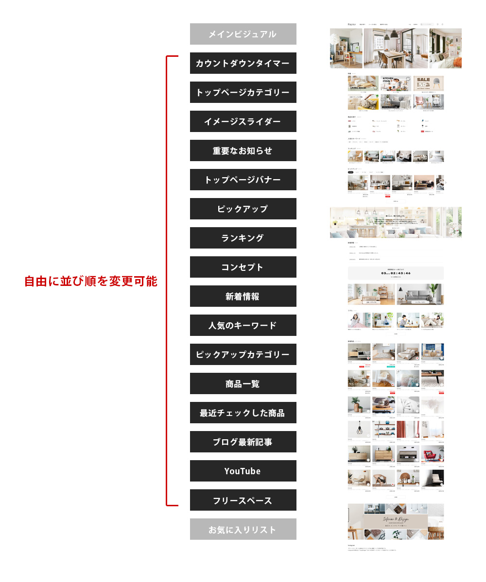 ONにしたパーツが自動的に最適化されたレイアウトで表示されます。